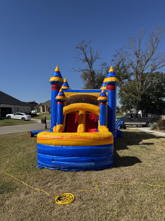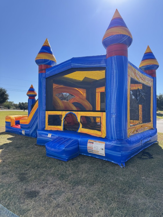 - OCCUPANCY: A maximum of 5-6 kids of equal size at one time for bounce houses, and 1 person at a time for slides is what most inflatable manufacturers recommend.